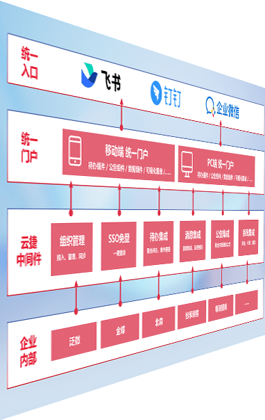 对协作平台提供支持服务,,支持企业应用与协作平台对接,,,包含组织同步、、消息集成、、待办集成等。。。支持目前主流的协作平台:钉钉、、企微和飞书。。